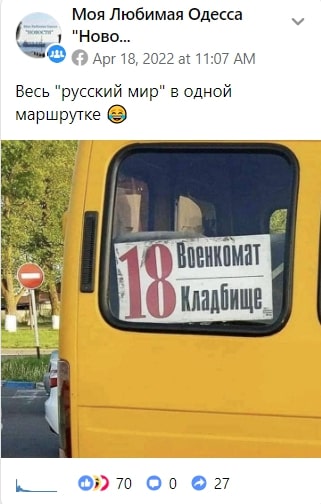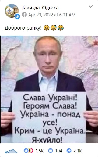 Однак, окрім пропагандистських наративів, пабліки потішили своїх читачів мемами. Українці з гумором протистояли пропагандистському напору та проросійським публікаціям. Актуальними публікаціями тут були: