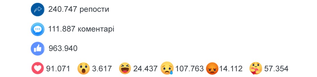 Сумарна кількість взаємодій з усіма дописами в пабліках: