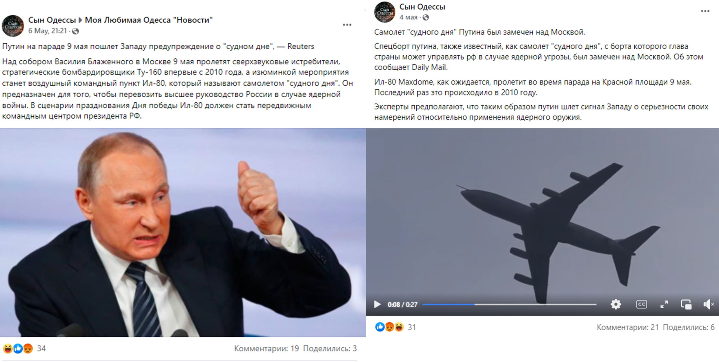 Не обійшла пропаганда і підготовку путіна до святкування 9 травня, намагаючись намалювати героїчний образ диктатора, який «всіх переграв». Особливо в цьому відрізнився паблік «Моя Любимая Одесса Новости», який просто тиражував інформацію, що розміщувалася в російських змі в сезон «побєдобесія». Зауважимо, що від початку повномасштабного вторгнення проросійська пропаганда не дозволяла собі подібної відкритості. Оцінка таких висловлювань є, на жаль, однозначною – російська пропаганда витримала паузу та, розуміючи, що перемог на полі бою в них не буде, намагається повернути втрачені позиції в інформаційному просторі.
