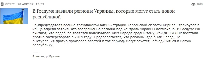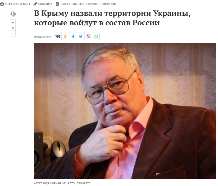 Також робилися «прогнози» щодо того, які конкретно території півдня України мають війти до складу росії. Серед них, поряд з Херсонською та Миколаївською областями, як правило, опинявся й Одеський регіон. Також в цьому контексті неодноразово порушувалася тема «невідворотного саморозпаду» України внаслідок того, що населення країни не може домовитися між собою. Пропаганда прогнозувала, що втрата українських територій, де «мешкають люди, які розмовляють та думають по-іншому» відбудеться найближчим часом.