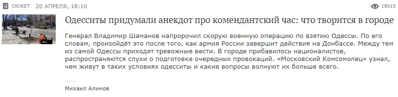 З початком повномасштабної війни росії проти України засоби масової інформації країни-агресора остаточно перетворилися на пропагандистські канали, що невпинно раз за разом транслюють нав’язані путінським режимом тези: Україну треба звільняти від нацистів; війна була неминуча; Одеса, Миколаїв, Херсон (необхідне підкреслити) – чекає на російський десант…
