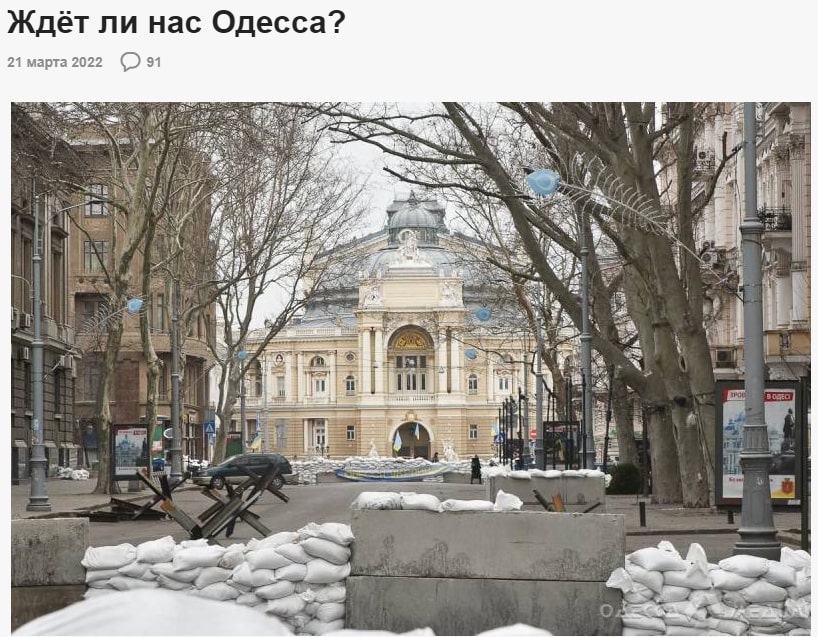 На окрему увагу заслуговують публікації на тему «чи чекає Одеса росіян», автори яких доходили висновку, що «ОДЕСА ЧЕКАЄ!», адже (авторський стиль збережено): «керівництво міста вміло залякувало одеситів білбордами, що зображують страждання Донбасу... Школи Одеси розпрощалися з російською мовою… продавці та касири СКРІЗЬ, під страхом покарання, заговорили українською… Тих, хто чекає на ЗВІЛЕННЯ Одеси, в місті переважна більшість. Але вони беззбройні, роз'єднані та залякані…» Вказані дописи слугують одній основній меті – намалювати картину, що Одеса мріє «запросити російський десант», але вона цього не робить, бо налякана українськими нацистами.