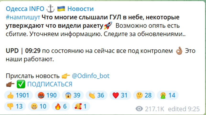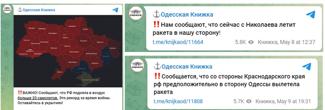 Подібна подача інформації також може заплутувати і породжувати панічні настрої. Дуже важливо, щоб повідомлення про загрозу обстрілів читачі отримували саме із достовірних джерел. І знали, хто саме говорить про ці загрози і що оцінки про ймовірність обстрілів робили компетентні люди. А не просто ті, хто в Краснодарському краї рф побачили, як у них над головою пролетіла ракета «предположительно в сторону Одессы».