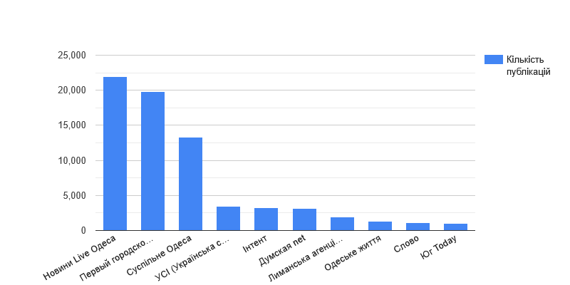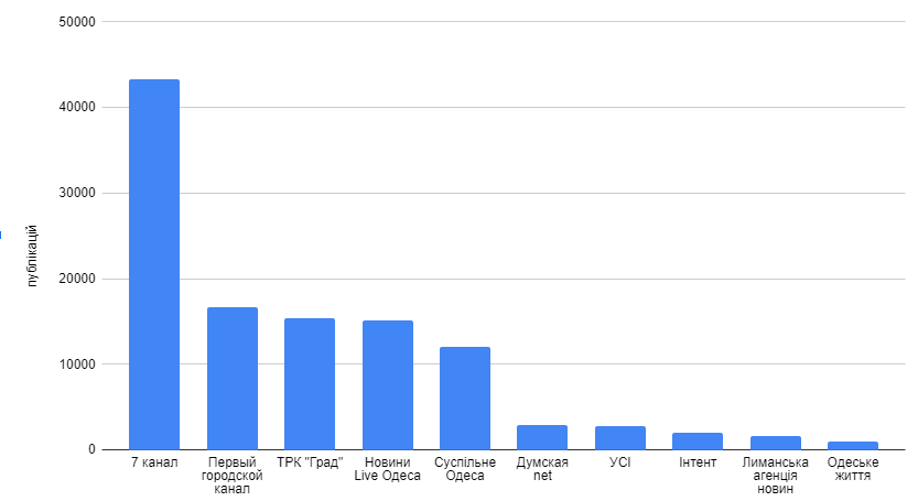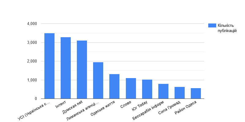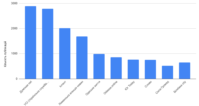 Привертає увагу, що безумовними лідерами (з невеликим розривом) стали Українська служба інформації та "Інтент", які перетнули показник у 3 тисячі відеопублікацій і посунули "Думську" на третє місце. "Слово" піднялося на два щаблі, а "Сила громад" — на один. Вибули зі списку "Біляївка city" й Odessa.online, натомість прийшли "Бессарабія інформ" та "Район Одеса". Решта видань залишилися на торішніх позиціях у рейтингу.