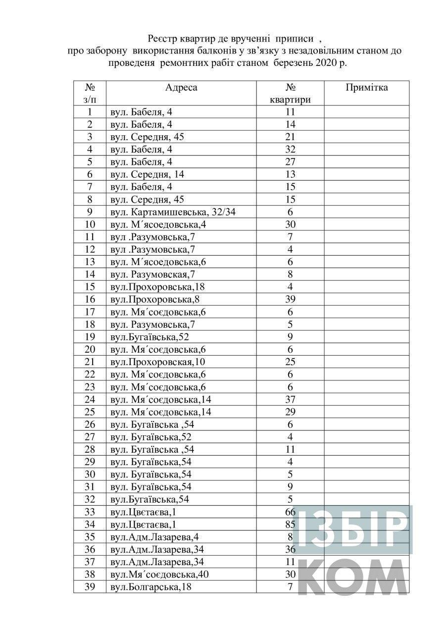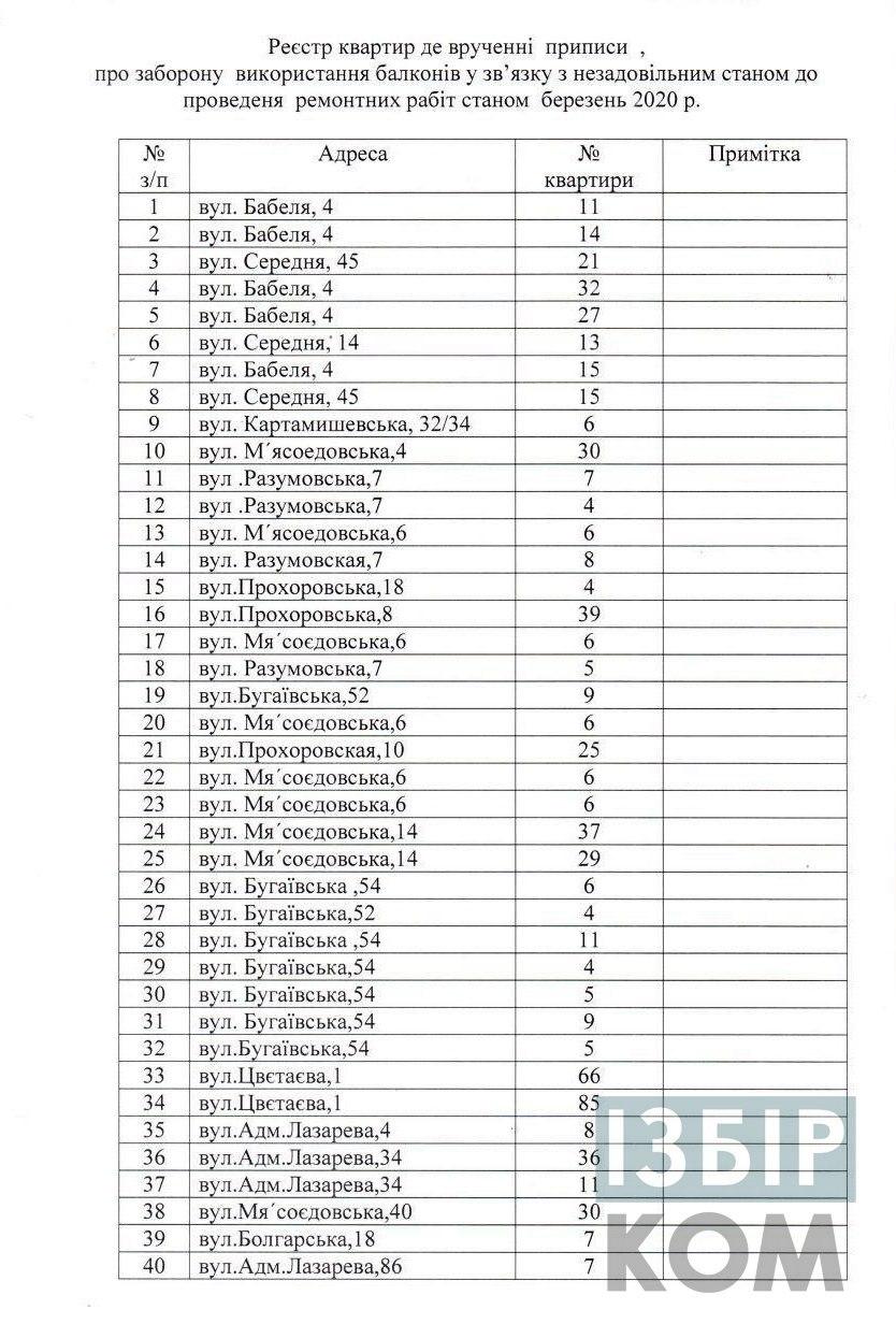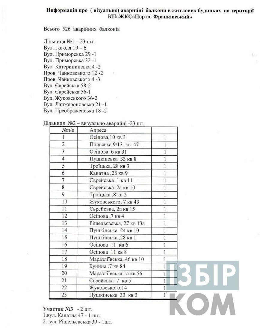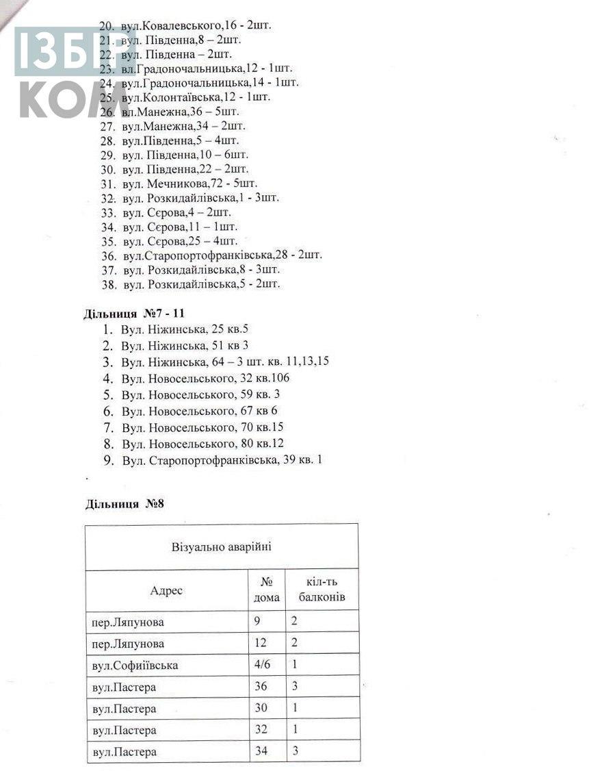 В Департаменті на запит ІзбірКому надали перелік аварійних балконів.