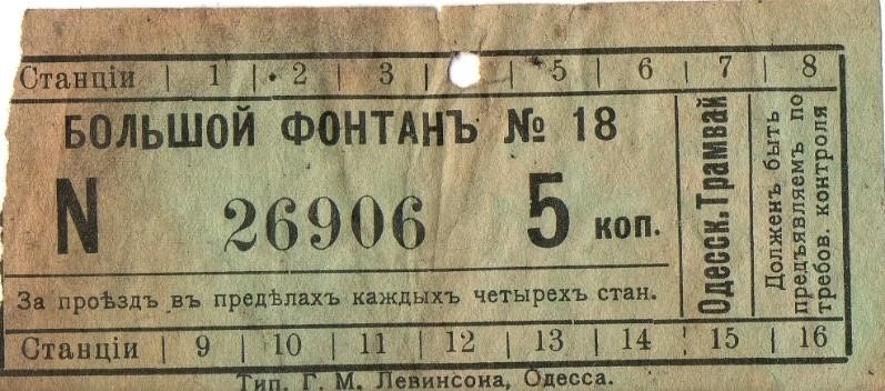 Розвиток трамвайного сполучення в Одесі був настільки продуманим, що до початку XX століття в Одесі існували трамвайні "квитки з пересадкою". Ці квитки давали право однієї безкоштовної пересадки під час проїзду містом. Пересадочні квитки діяли протягом 2 годин із позначеного на квитках часу їхньої видачі.