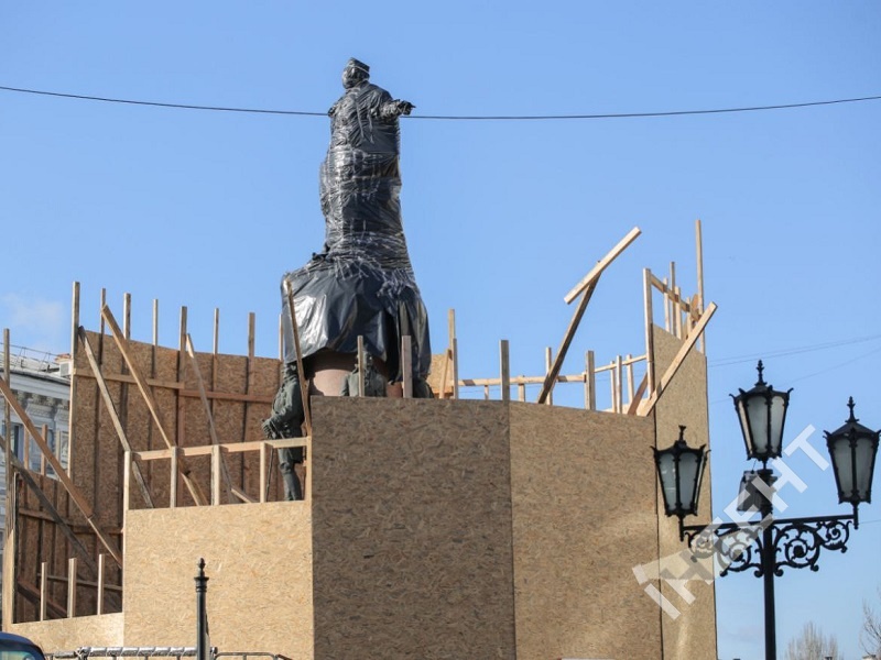 28 грудня комунальники за допомогою автовежі почали демонтувати огорожу навколо пам'ятника Катерині ІІ в Одесі. На знесення паркану пішов весь світловий день, а сам пам'ятник Катерині та ще чотири скульптури ансамблю зносили вже вночі, під час комендантської години. Той же порядок денний використовували й при демонтажі пам'ятника Суворову. Зранку 29 грудня всі статуї вже перебували у дворі Одеського художнього музею, а світлини - буквально у всіх пабліках України.