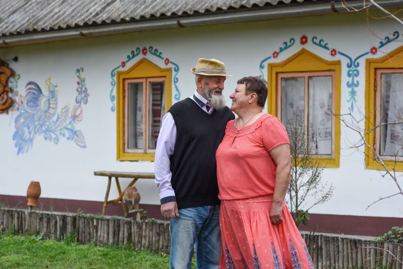 Адже поки Ольга чаклує з воском і показує варіанти квіточок та пацьорок, її чоловік Володимир незмінно поруч — попереджує кожен рух дружини, аби вона зайвий раз не навантажувала єдину здорову ногу. А цей погляд! Здається, що цей погляд такий же як 54 роки тому в день весілля.