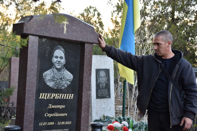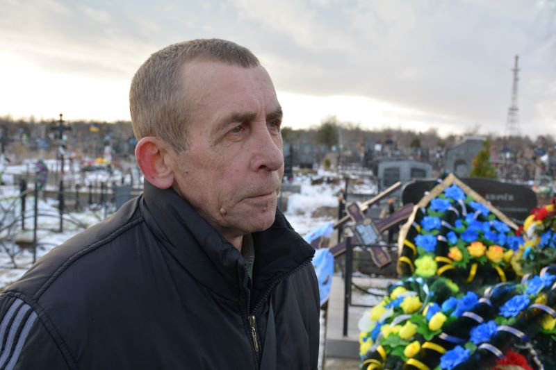 Сергій Щербінін біля могили племінника. Фото: Ігор Арчибісов