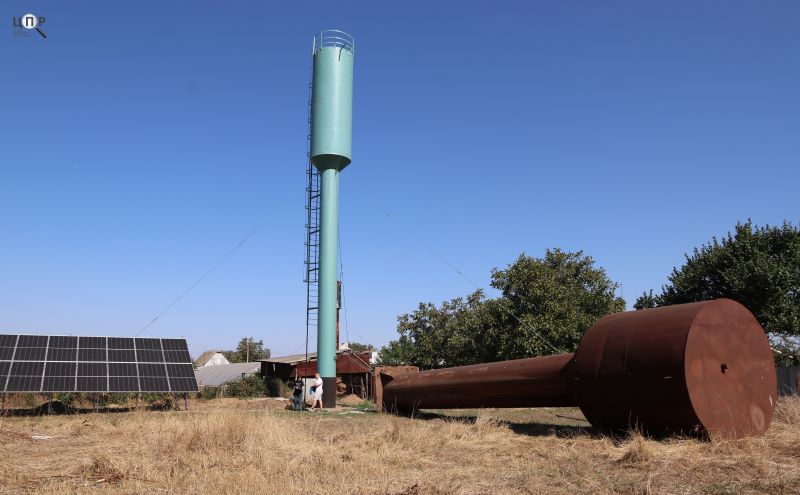 Після інтерв'ю Оксана Гнедько показала нам, як в селі вже відновили водонапірну башту та ще й сонячні панелі встановили.
