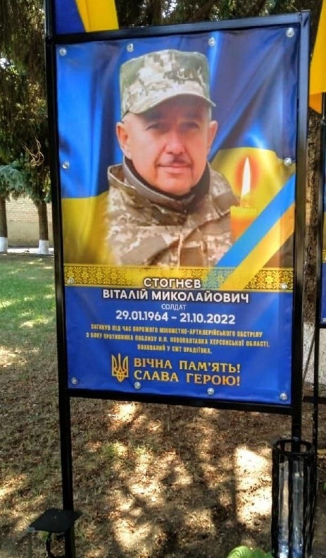 Боєць 1 батальйону 123 бригади територіальної оборони Віталій Стогнєв загинув 21 жовтня 2022 року поблизу села Новополтавка на Херсонщині.