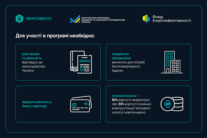 Как сообщили в Министерстве развития общин и территорий Украины (Минразвития), это позволит многоквартирному дому стать энергонезависимым, а его жителям обеспечит работу лифтов, насосов, освещения и систем безопасности во время отключений. Соответствующие изменения в программе утверждены постановлением правительства, подготовленным совместно Минразвития и Минэкономики. Документом расширены возможности грантового компонента и упрощены правила участия в программе.