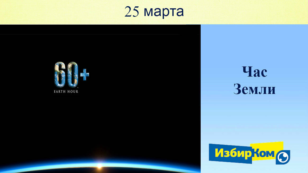 Час Земли — это глобальная ежегодная международная акция, организованная Всемирным фондом дикой природы. В этот день в назначенное время люди в разных странах мира на один час отключают свет и другие электроприборы. Смысл акции — привлечь максимально широкое внимание мирового сообщества к проблеме изменения климата нашей планеты.