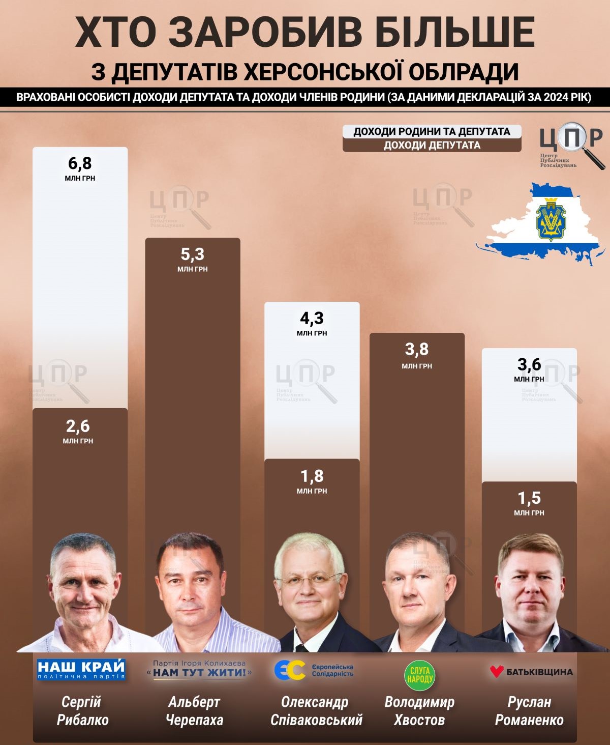 Общая численность Херсонского областного совета должна была составлять 66 человек, однако 13 депутатов досрочно потеряли мандаты: кто-то перешел на сторону врага во время широкомасштабного вторжения, кто-то умер, а часть добровольно отказалась от полномочий. Анализ 25 деклараций за 2024 год показал огромный финансовый разрыв среди избранников.