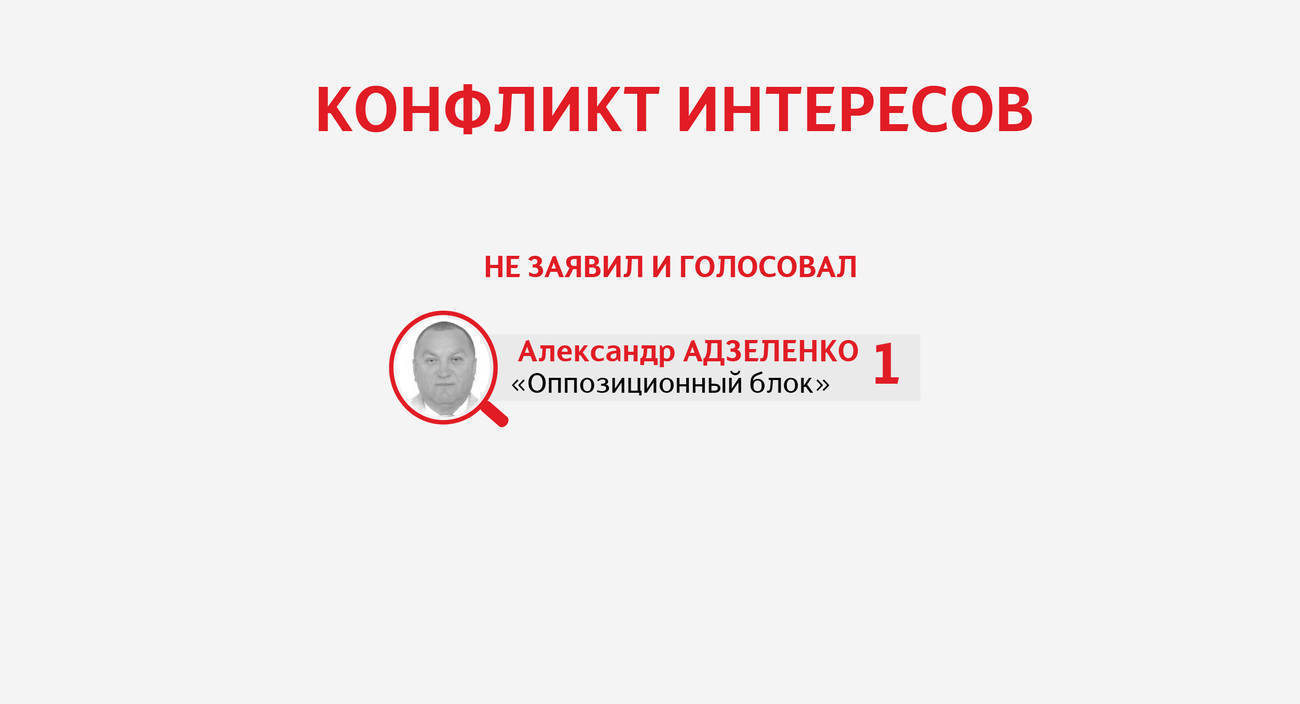 В областном совете ненадлежащее поведение в условиях конфликта интересов было зафиксировано со стороны Александра Адзеленко, представляющего Оппозиционный блок.