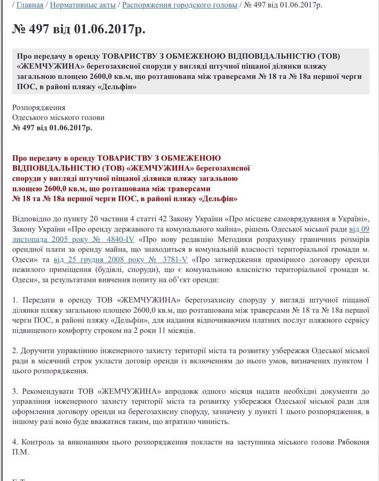 ООО «Жемчужина», которое ранее проинвестировало берегоукрепление в Аркадии, теперь оформляет на этом пляже землю под строения