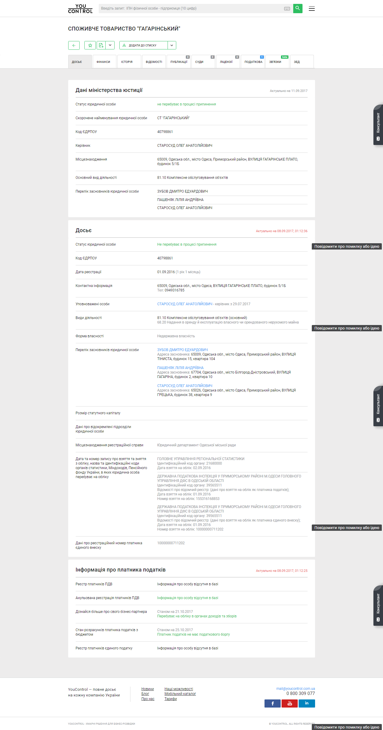 Последний связан с рядом строительных объектов и обслуживающих компаний, в частности, потребительское общество "Гагаринский" (дом на Гагаринском плато, 5/1б) строила компания "Стикон", а эта фирма, очевидно, его обслуживает. Интересно, что в учредителях также значится супруг бывшего депутата горсовета и народного депутата Светланы Фабрикант Дмитрий Зубов. Вторая связанная компания – «Совиньон-ленд».