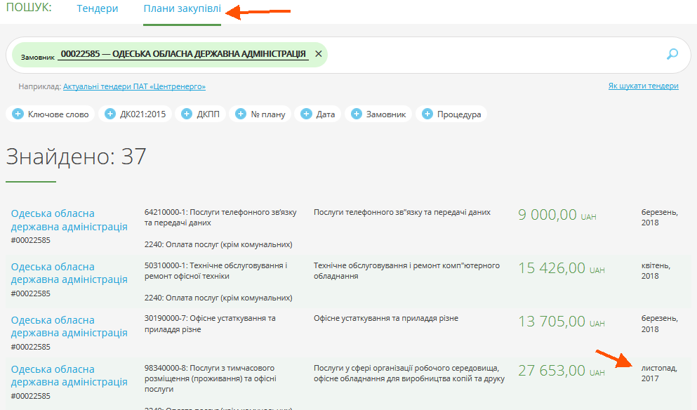 Кроме того, согласно ст. 4 Закона Украины "О публичных закупках", закупка осуществляется согласно годовому плану. Годовой план и изменения к нему безоплатно публикуются на веб-портале Уполномоченного органа по вопросам закупок в течение пяти рабочих дней со дня утверждения годового плана или изменений к нему. Однако на портале ProZorro обнаружить такой план не удалось, как и на Едином государственном веб-портале открытых данных.