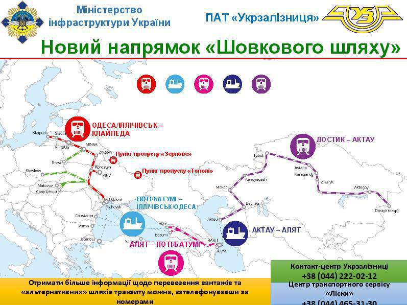 Этот маршрут станет новым направлением «Шелкового пути» и альтернативой доставки грузов из Украины на эти рынки в обход территории России
