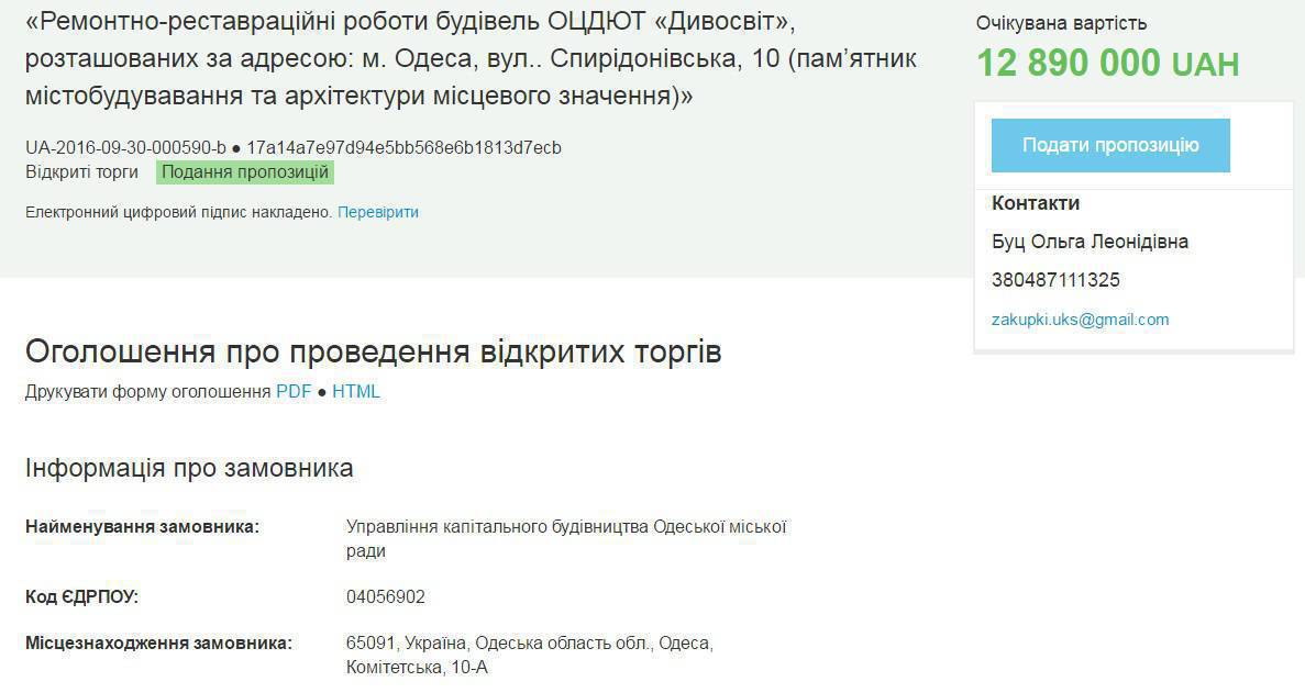 Согласно объявлению за капитальный ремонт дома 1890 годов постройки городской совет предлагает 12 миллионов 890 тысяч гривень.