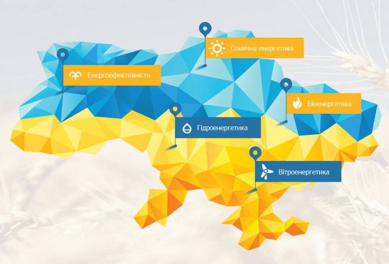 Карта аккумулирует информацию о проектах по энергоэффективности и возобновляемой энергетики в Украине