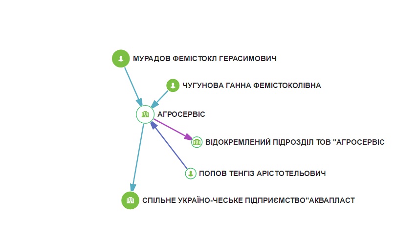 Согласно единому реестру юридических лиц, физически лиц предпринимателей и общественны формирований ООО «Агросервис» принадлежит Фемистоклу Мурадову и его дочери Анне Чугуновой.