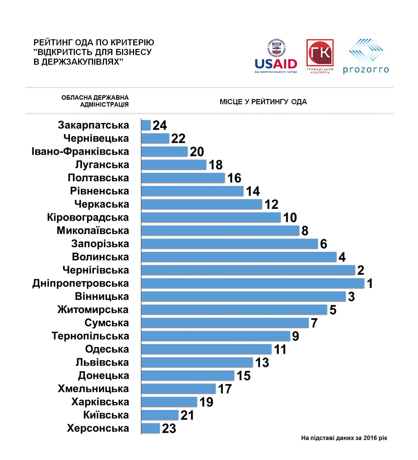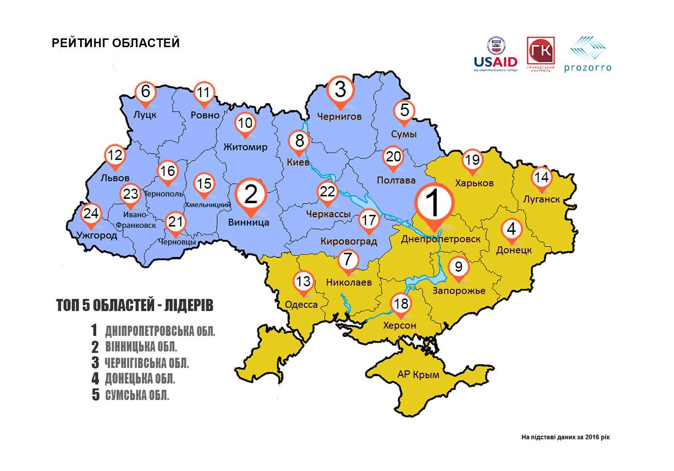 Общественная организация «Громадський контроль» на основе открытых данных ProZorro составила рейтинг самых привлекательных и открытых для малого и среднего бизнеса областей Украины.