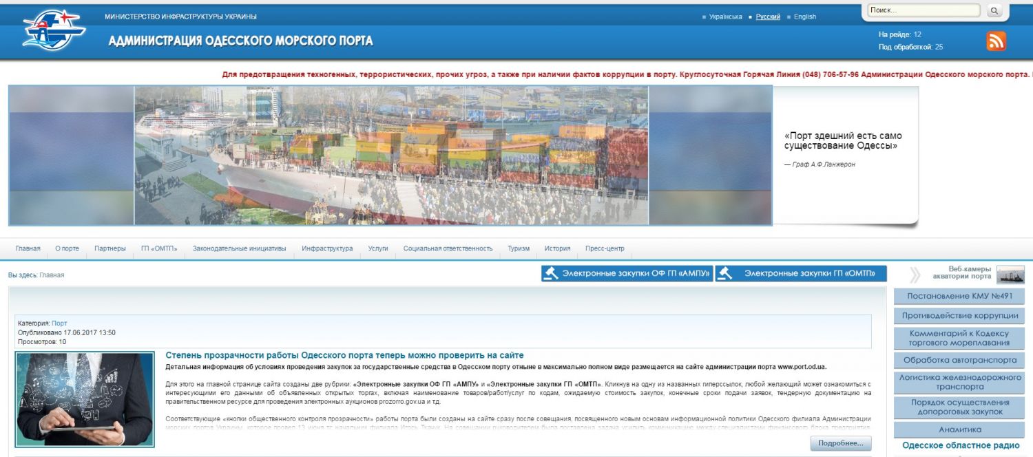 Детальная информация об условиях проведения закупок за государственные средства в Одесском порту отныне в максимально полном виде размещается на сайте администрации порта