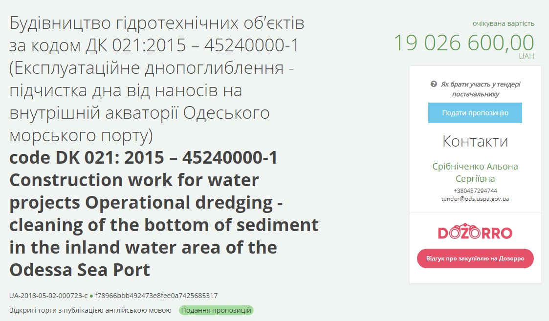 «АМПУ продолжает планомерную работу по проведению дноуглубления во всех украинских портах. В Одесском порту дноуглубление мы проводили в прошлом году собственным флотом, а в этом — привлечем к этой работе подрядчика, поскольку флот АМПУ задействован на других участках, в частности ведутся работы в Дунайском и Азовском регионах. Ожидаем, что торги пройдут в отведенные сроки. Кроме того, для нас важна экономическая составляющая и качество работ. АМПУ имеет уже достаточно большой опыт в проведении таких процедур, поэтому мы рассчитываем на успешность этого конкурса», — прокомментировал руководитель АМПУ Райвис Вецкаганс.