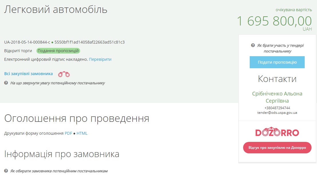 Соответствующая информация опубликована в системе электронных закупок Рrozorro.