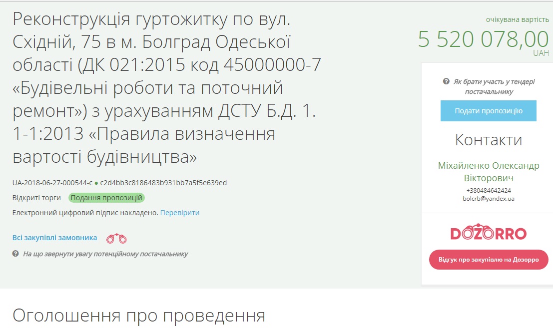 Об этом сообщили в системе электронных закупок Рrozorro.