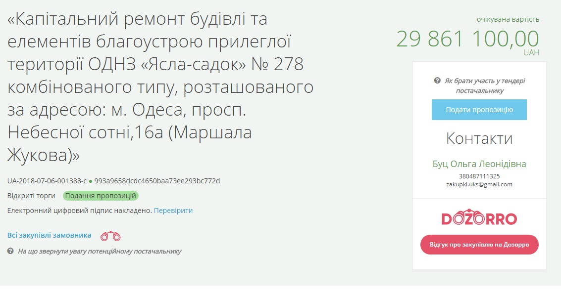 Управление капитального строительства Одесского городского совета объявило тендер для поиска компании, которой заплатят за капитальный ремонт детского сада.