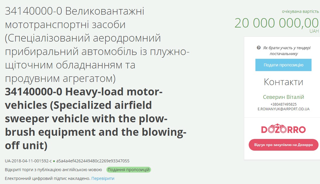 Коммунальное предприятие «Международный аэропорт Одесса» планирует купить специализированный аэродромный уборочный автомобиль с плужно-щеточным оборудованием и продувочным агрегатом.