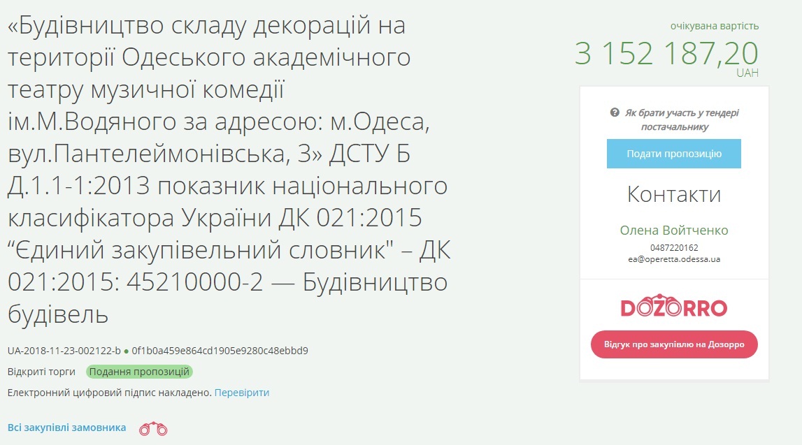 Коммунальное учреждение «Одесский академический театр музыкальной комедии им.М.Водяного» объявил тендер для поиска подрядчика, которому заплатят за строительство склада декораций.