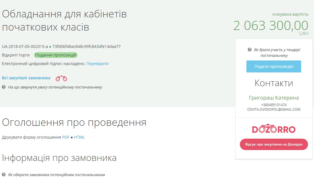Об этом сообщили в системе электронных закупок Рrozorro.