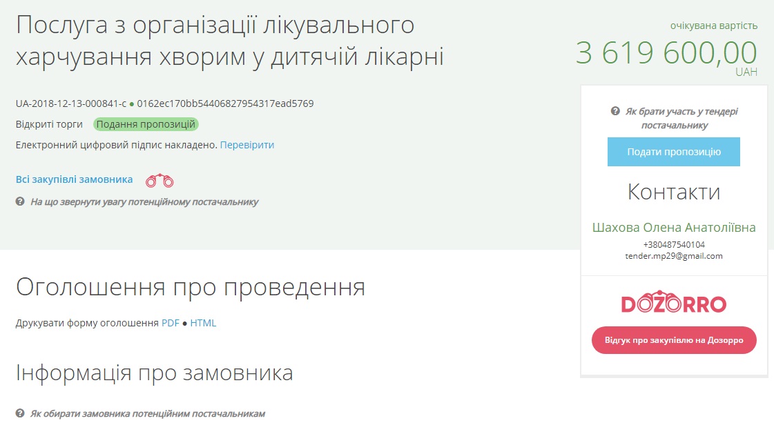 Ожидаемая стоимость закупки 3 миллиона 619 тысяч гривень.