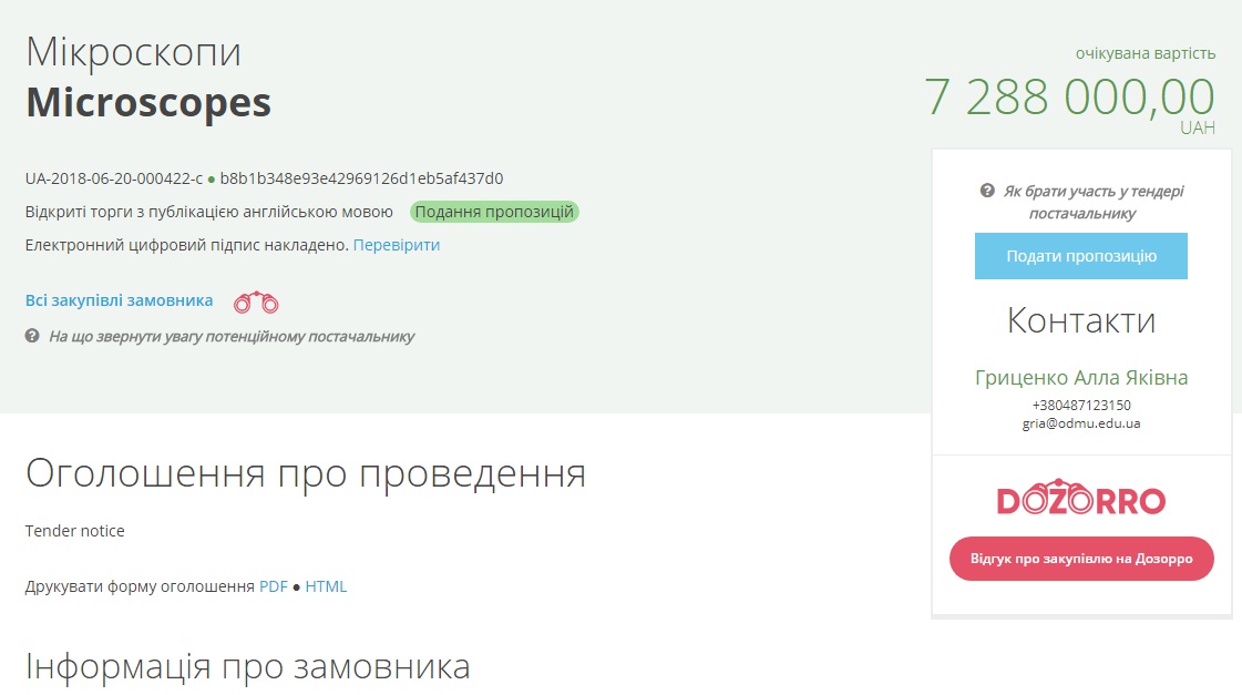 Одесский национальный медицинский университет объявил тендер для поиска компании, у которой закажут микроскопы.