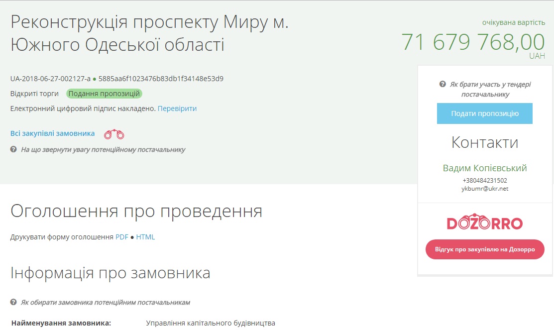 Об этом сообщили в системе электронных закупок Рrozorro.