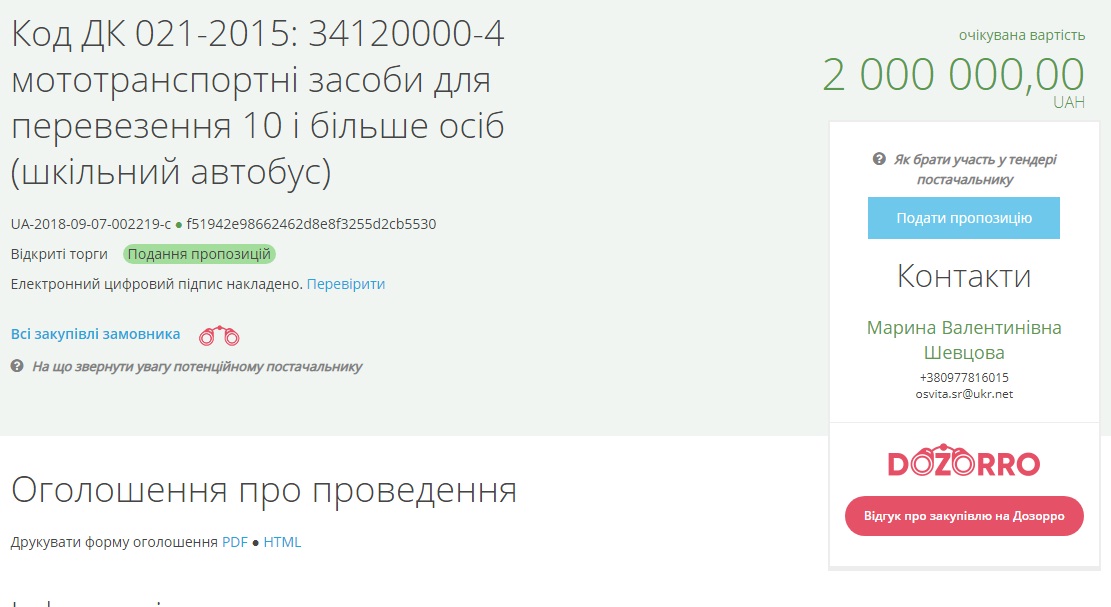 Соответствующее объявление опубликовано в системе электронных закупок Рrozorro.
