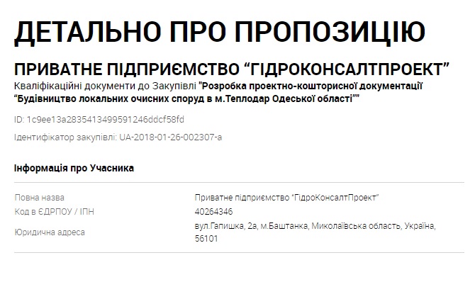Интересно, что стоимость договора составила 300 тыс. грн, однако закупка услуг производилась без тендерных процедур. Проект будет разрабатывать фирма "Гидроконсалтпроект" из Баштанского района Николаевской области.