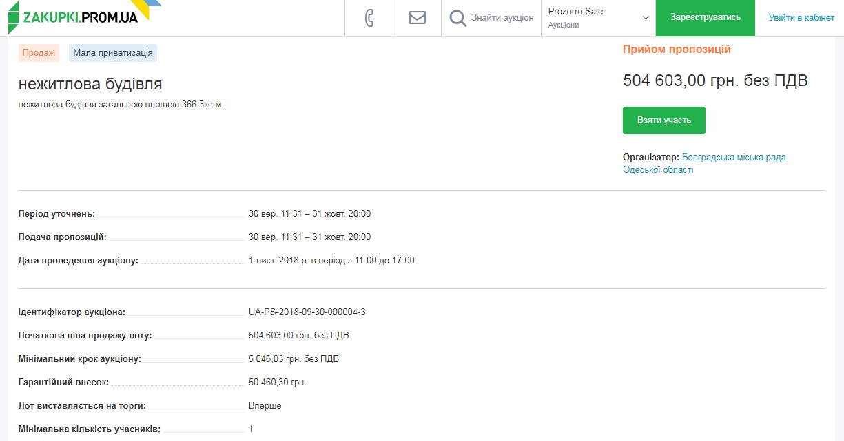Соответствующую информацию муниципалитет разместил в системе электронных аукционов «Рrozorro.sale».