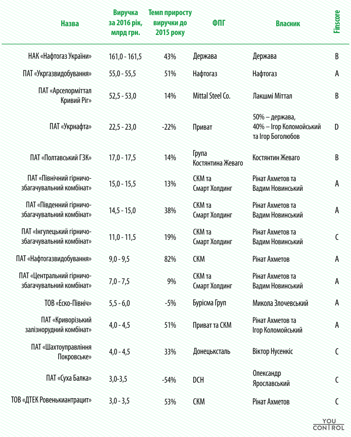 Также в список владельцев наибольших компаний-владельцев недр попали предприятия известных бизнесменов: Николая Злочевского, Виктора Нусенкиса, Александра Ярославского.