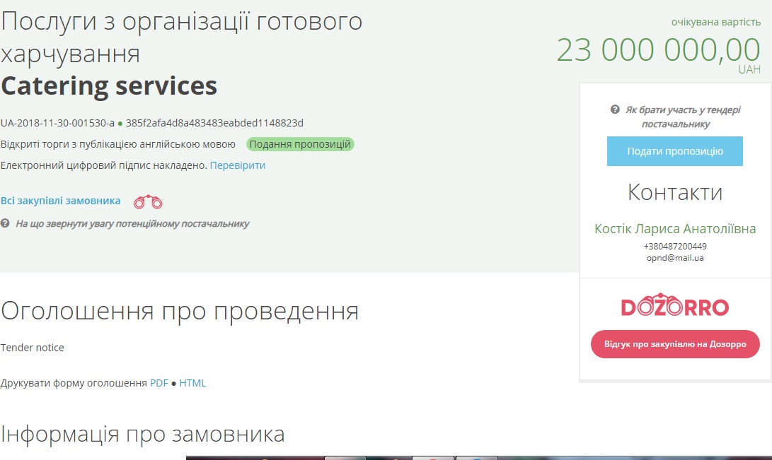 Соответствующее объявление опубликовано в системе электронных закупок Рrozorro.