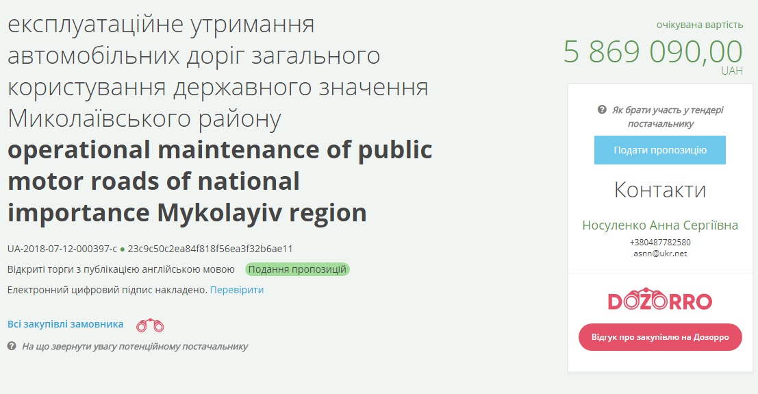Соответствующее объявление опубликовано в системе электронных закупок Рrozorro.