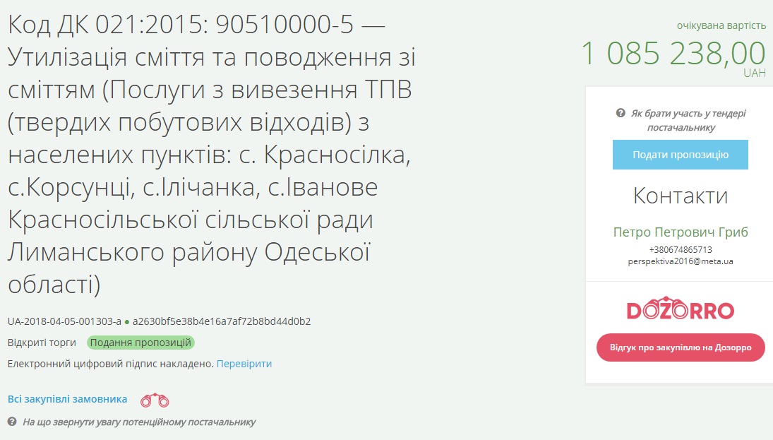 Коммунальное предприятие «Перспектива» Красносельского сельского совета Лиманского района объявила тендер для поиска компании, которая займется вывозом твердых бытовых отходов из четырех сел.