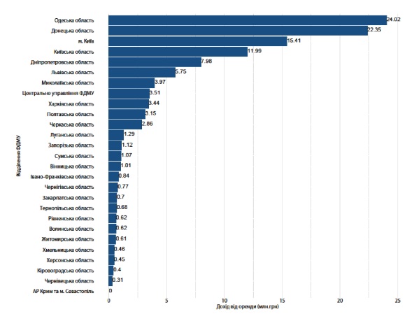 Одесская область оказалась в лидерах по доходам от сдачи в аренду государственного имущества - в 2018 году от сдачи госимущества в регионе государство зарабатывало 24 миллиона гривень в месяц.