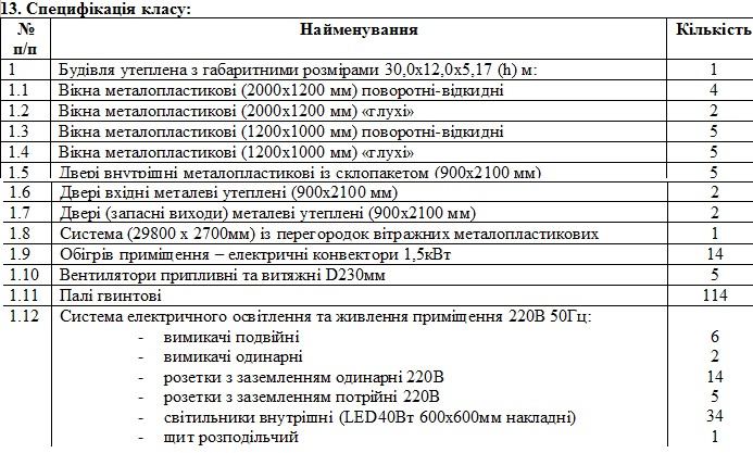 Классы должны быть оборудованы системами: электропитания, LED освещения, вентиляции и электрического обогрева и предусматривать возможность относительно быстрого монтажа на подготовленной площадке заказчика, а также осуществление демонтажа и перебазирования в полевых условиях при необходимости. Многоцелевой класс должен представлять собой утепленную металлическую конструкцию, которая устанавливается на винтовых сваях и имеет двускатную крышу.