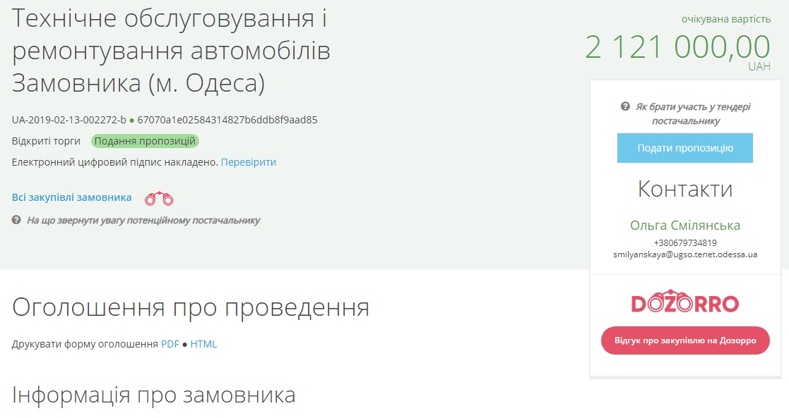 Управление полиции охраны в Одесской области объявило тендер для поиска компании, которой заплатят за техническое обслуживание и ремонте автомобилей.