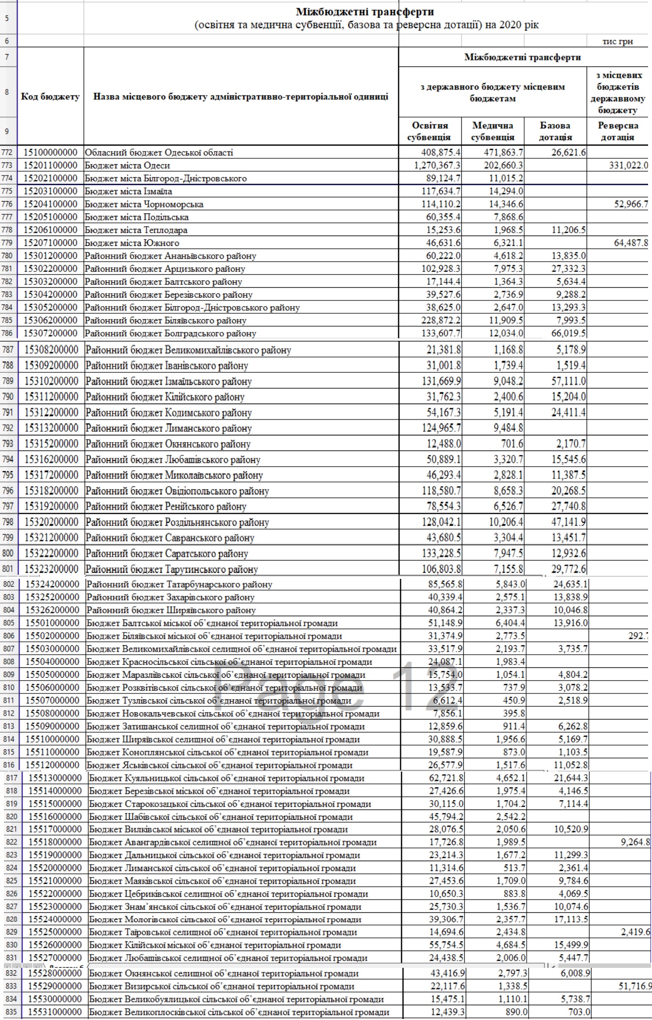 Также предполагаются субвенции и дотации для Одесского областного и городского бюджетов, а также для районных бюджетов и бюджетов громад.