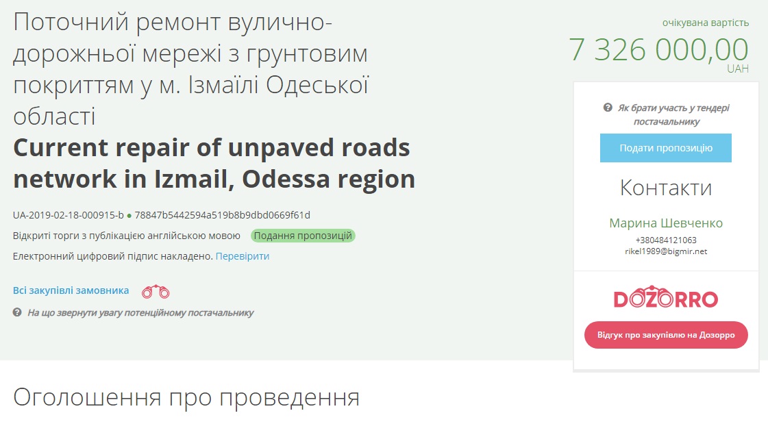 Управление жилищно-коммунального хозяйства Измаильского городского совета объявило тендер для поиска компании, которой заплатят за текущий ремонт улично-дорожной сети с грунтовым покрытием в Измаиле Одесской области.